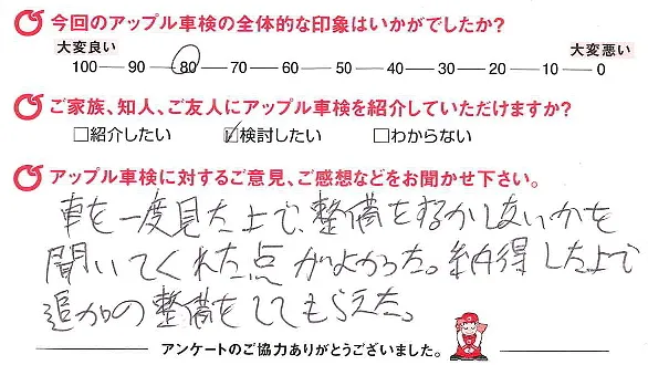 札幌市豊平区 お客様の声⑫|車検、札幌市豊平区、価格、料金 小林兄弟自動車