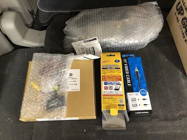 ステップワゴンの現在の状態、ご自身でご準備いただいたナビ他関連パーツをおおよそお教えいただいて費用のご相談。一度用品をご持参し取付部品がそろっているかの確認をして。不足部品はお客様でまたご準備したうえでお預かりし作業となりました。
