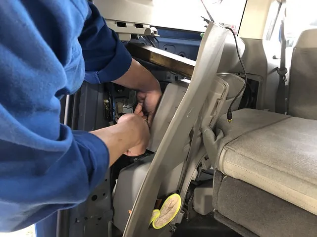 配線の引き直しまたリヤバックカメラの配線も取り廻し組付けていきます。