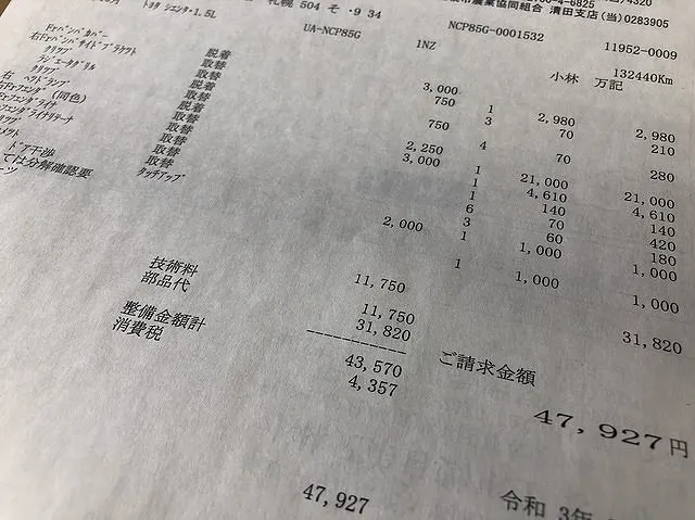 当店での点検料を、お客様ご来店の際にお知らせいたします。また、追加整備が必要になる場合もその都度その都度お知らせいたします。事前確認のうえ作業を行います。