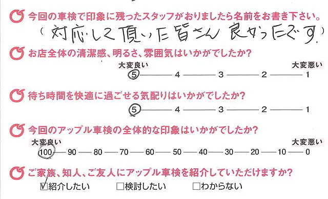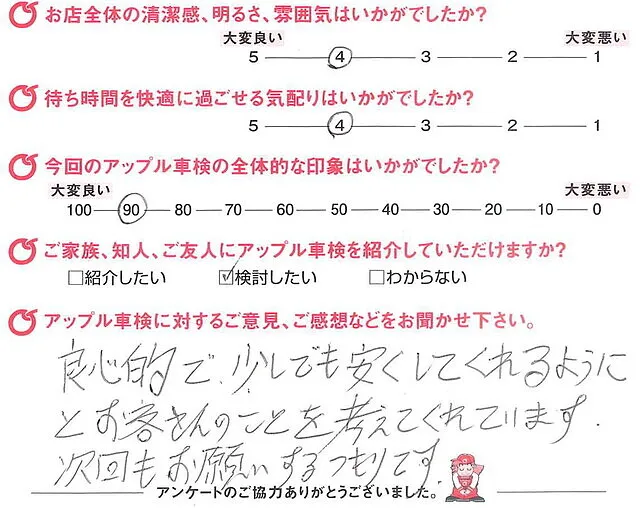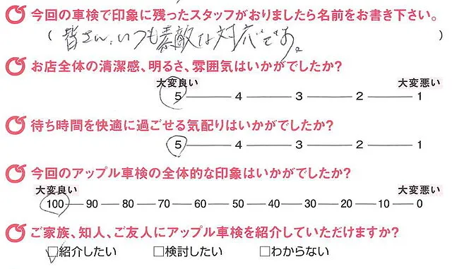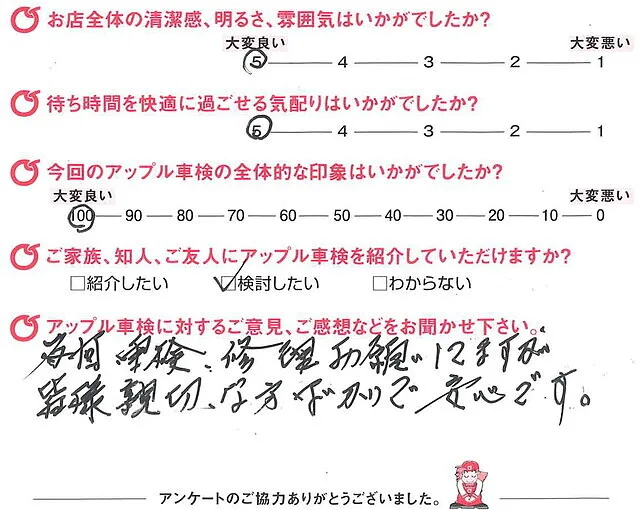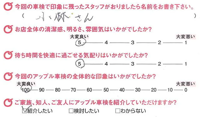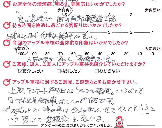 アンケート評価は「アップル車検」というよりも