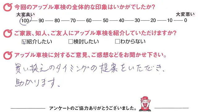 買い換えのタイミングの提案をたいただき