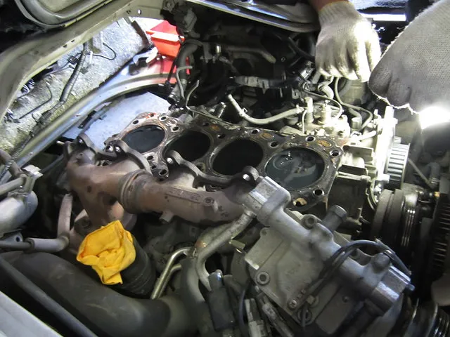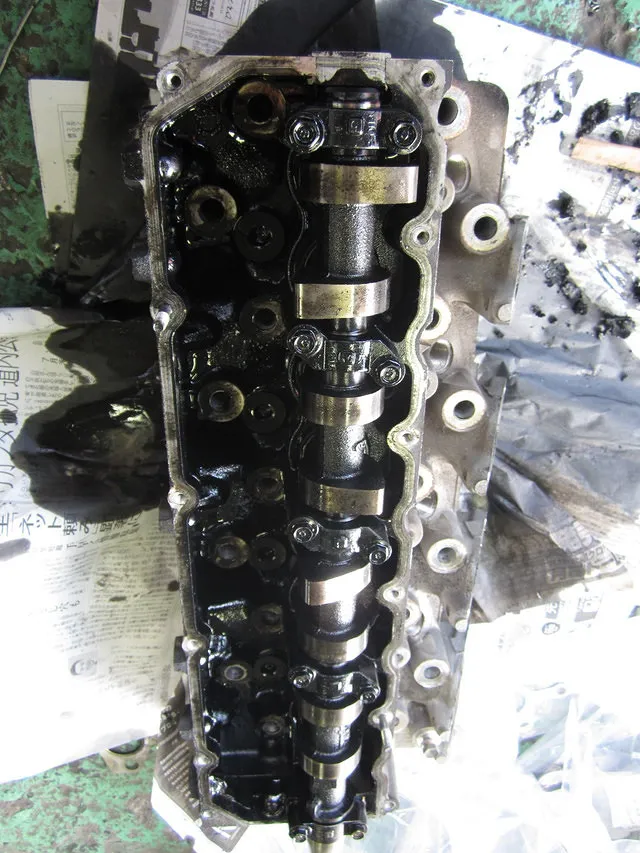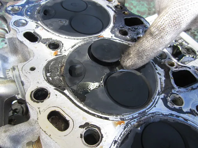 エンジンオイルを抜き、クーラントを抜き関連部品を分解後エンジンのシリンダーヘッドを降ろしました。