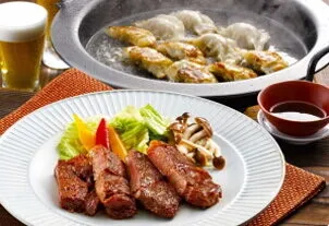 黒豚の美味しさが詰まったジューシーな餃子と、黒豚のもも肉をコクのある甘味噌だれで漬けた甘味噌漬けをセットにしてお届けします。