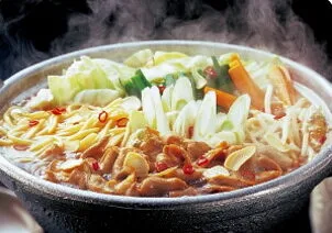 博多名物もつ鍋は、一年を通して食されるほど九州では定番のお鍋。キャベツやニラなど、お好みの野菜を入れるとスープの旨味がより引き立ちます。お鍋のシメにはちゃんぽん麺をお楽しみください。