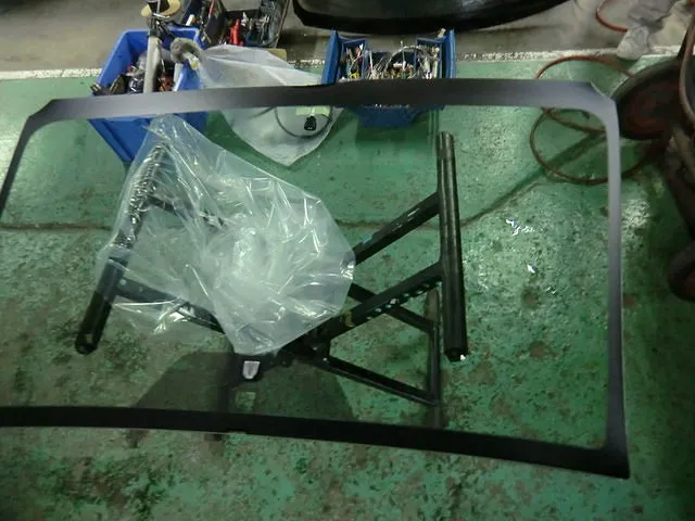 車体から損傷したガラスを外しました。こんな状況は普段見ませんよね。