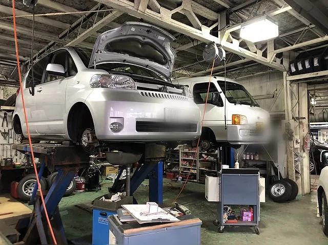 車両専用リフトに2台の車検車両が・・・。あがっています