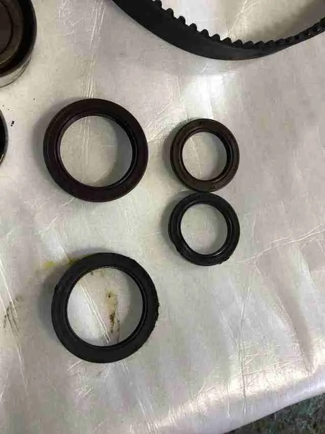 オイルの漏れを防ぐオイルシールこちらもゴム部品で成り立っていて定期的なオイル交換をしていなかったり走行距離によって劣化します。今回は新しいシールへ交換しました。