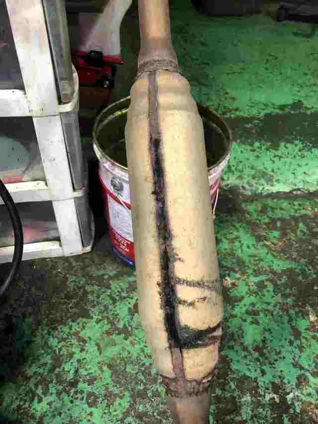上が新しいセンターマフラー、下がいままでついていた排気漏れしているマフラーです。