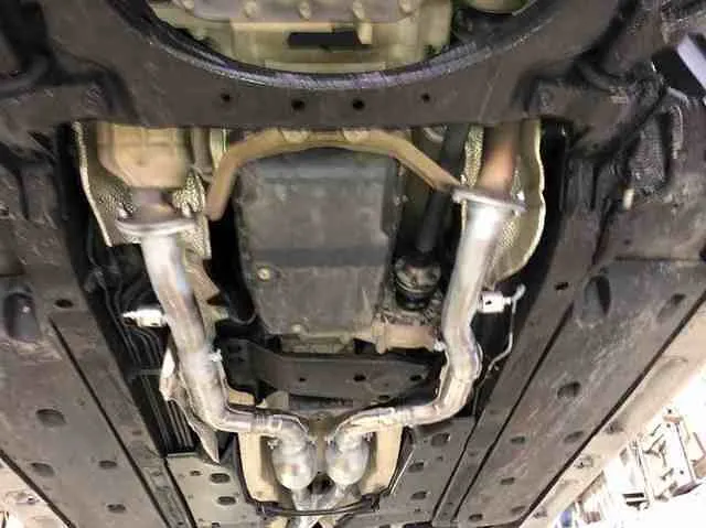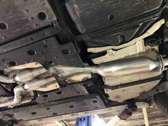排気漏れしているマフラーを関連部品を外していきながら本体を交換します。左右に排気センサーもついています。こちらについては今ついているものを再利用となります。