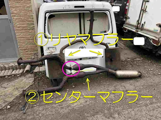 確認しにくい場所で申し訳ありませN。①、②のマフラーを交換しています。