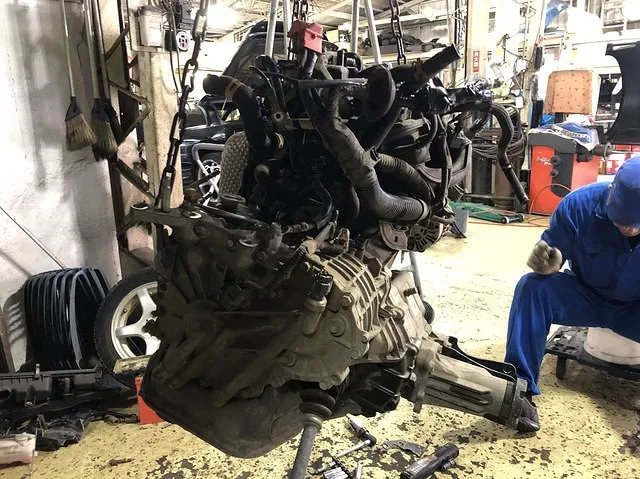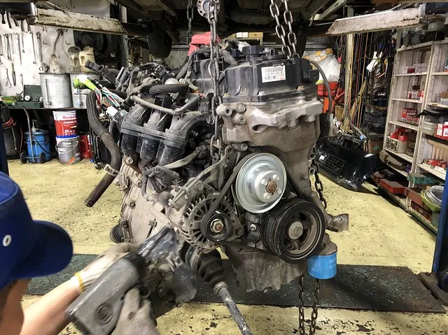 エンジン降りてきました。降ろしてまた各部分解していきます。