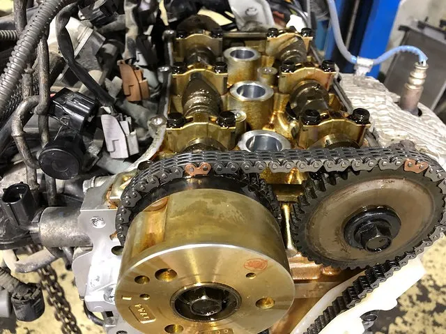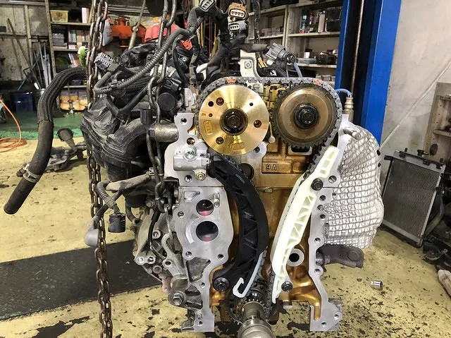 タイミングチェーンが伸びるとバルブタイミングもずれ最悪エンジン始動不良となります。