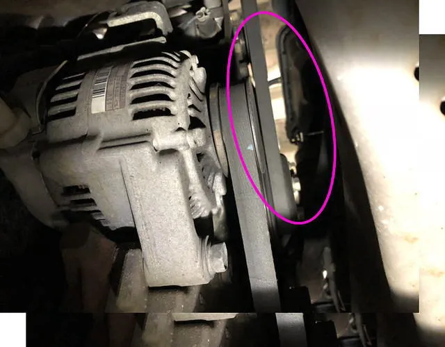 ベルトの溝が欠損しているのが確認できます。この状態なら異音は発生しますしいつ切損してもおかしくはありません。