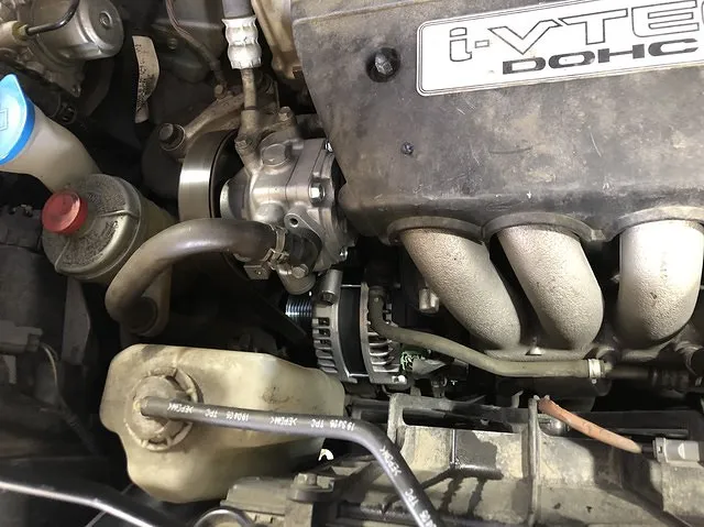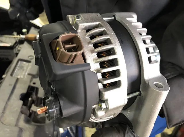ベルトの動力をかいして回す。オルタネーターは発電をする力を持っています。