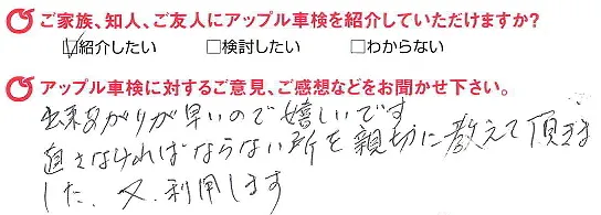 札幌市豊平区 お客様の声⑦|車検、札幌市豊平区、価格、料金 小林兄弟自動車