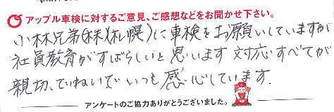 札幌市豊平区 お客様の声③|アップル車検 札幌月寒店 小林兄弟自動車 小林兄弟自動車
