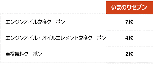 いまのりセブンなら、オイル交換や契約期間内の車検が無料になるクーポンがついてきたり、レンタカーを特別料金で使えるなど、おトクな特典がいっぱいです。