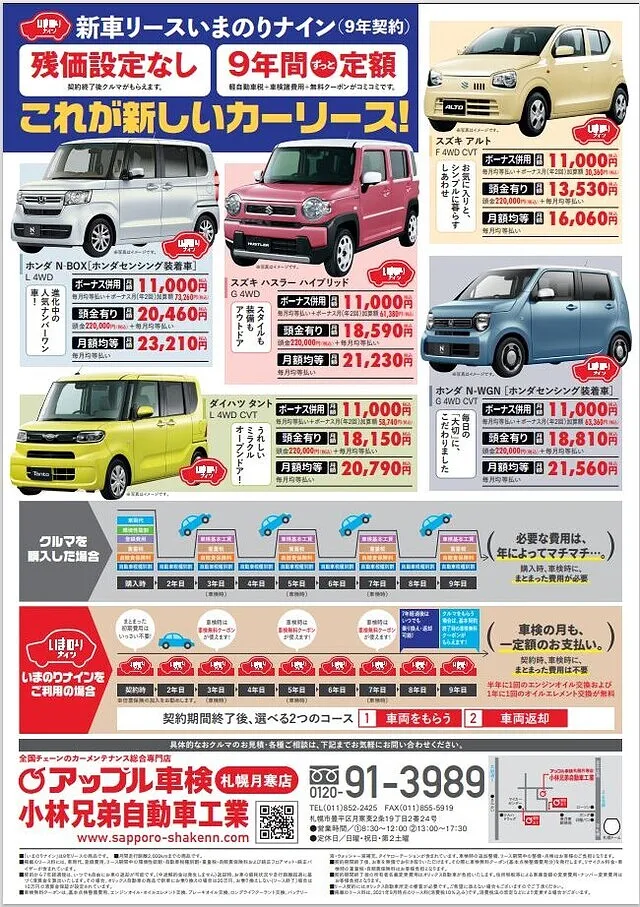 札幌市豊平区 札幌市豊平区新車販売マイカーリース|アップル車検 小林兄弟自動車 小林兄弟自動車