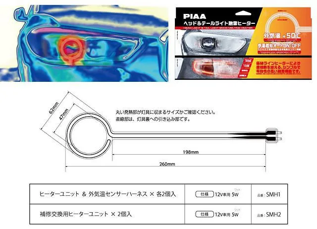 ●本製品は、ヘッドライトおよびテールライトに貼り付ける、融雪ヒーターです。