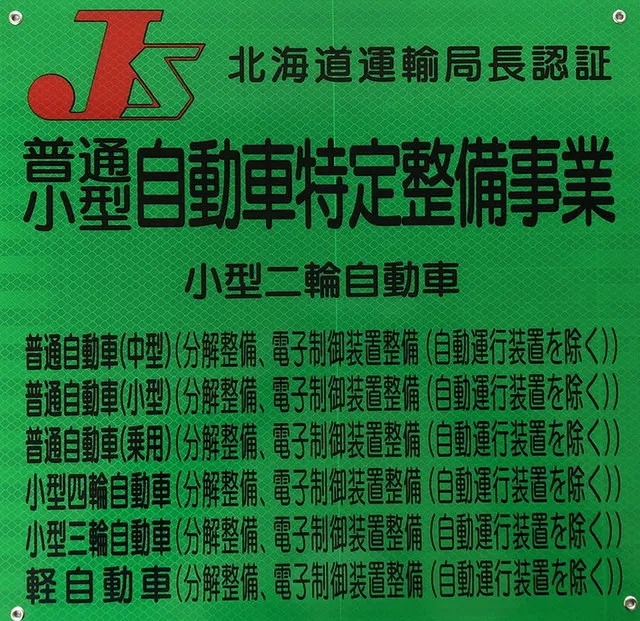 また北海道運輸局長指定工場でもあります。