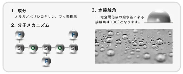 従来のガラス系コーティングに比べ、シリカ成分の含有量が95~98%と多いのが特徴です。