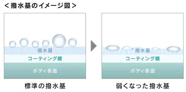 日常のお手入れは水洗い洗車で問題ありません。水道水に含まれるカルキ成分は雨ジミの原因となりますので放置せずにすぐ拭き上げてください。また不純物がボディに付着したままの状態になると撥水基が弱くなりますので、2週間に1回程度のこまめな洗車をお願い致します。ボディ表面をこすると撥水基がとれてしまいますので、落ちにくい鳥の糞などはお湯にマイクロファイバークロスを浸し、温めながら除去してください。お手入れに便利なユーザーメンテナンスキットを設定しておりますので、当店よりお買い求めください。
